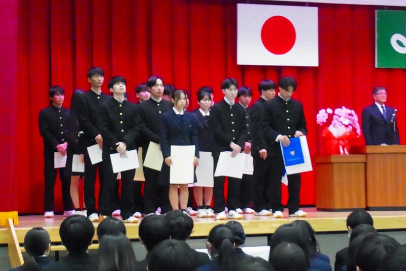 続けて、賞状伝達式に移り、美術部、吹奏楽部、ラグビー部、ボート部、陸上部などの各部活動の活躍に対して表彰がありました。