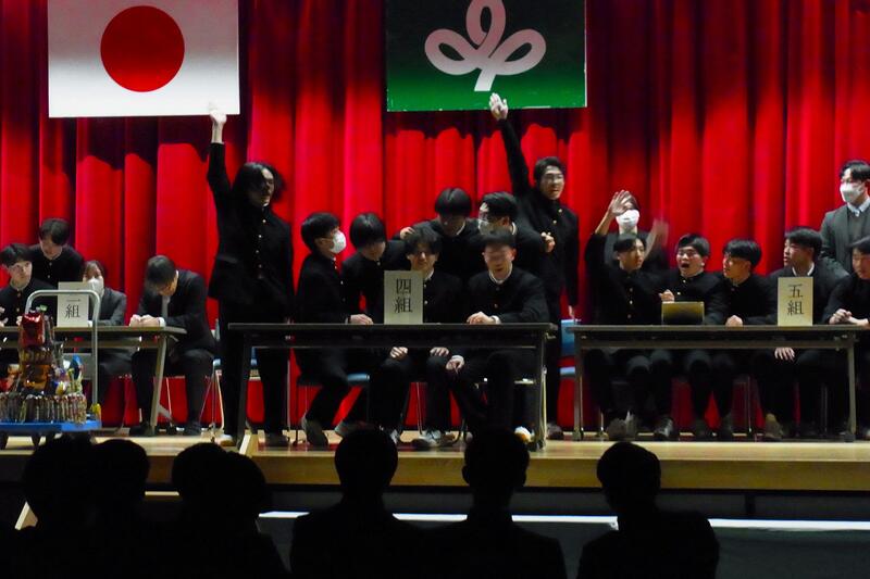 最後に生徒会執行部の企画で、3年生クラス対抗イントロクイズを行い熱戦の末、2組が優勝しました。生徒会企画が終わったと思ったら、最後の最後に卒業生にゆかりのあるサプライズゲストが登場し、卒業生にあたたかいメッセージを送っていただきました。