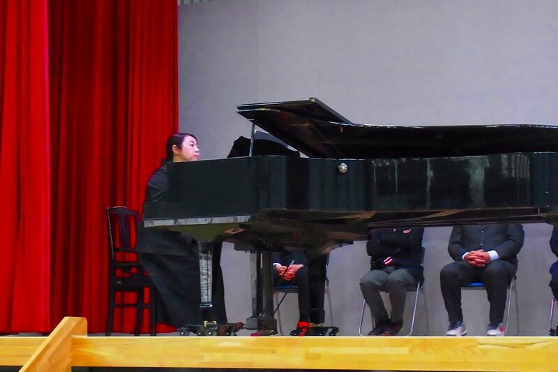 加賀谷校長先生からの紹介があり、お一人ずつ言葉をいただきました。ある先生は感極まって涙声、ある先生は生徒たちに向けてピアノ演奏を送りました。