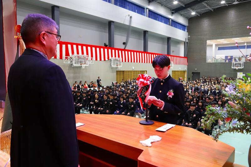 「不安なことや悩んだことも仲間たちの優しさや励ましが、どんな壁も乗り越えられることを教えてくれました。そして、みんなと共に過ごした日々は私の宝物です。このかけがえのない出会いに感謝しながら新たな一歩を踏み出したいと思います。」と、感謝と将来への決意を込めて答辞を述べました。