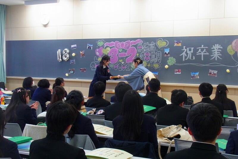 そして、卒業生は最後のホームルームに臨み、教室に入りきれないほど多くの保護者が見守る中、担任の先生から一人ひとりに卒業証書が手渡されました。