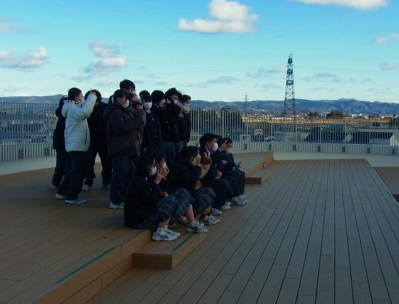 | OB・OGからの学校紹介 | 図書館見学 | 東棟屋上(だんだんテラス)での記念写真 |