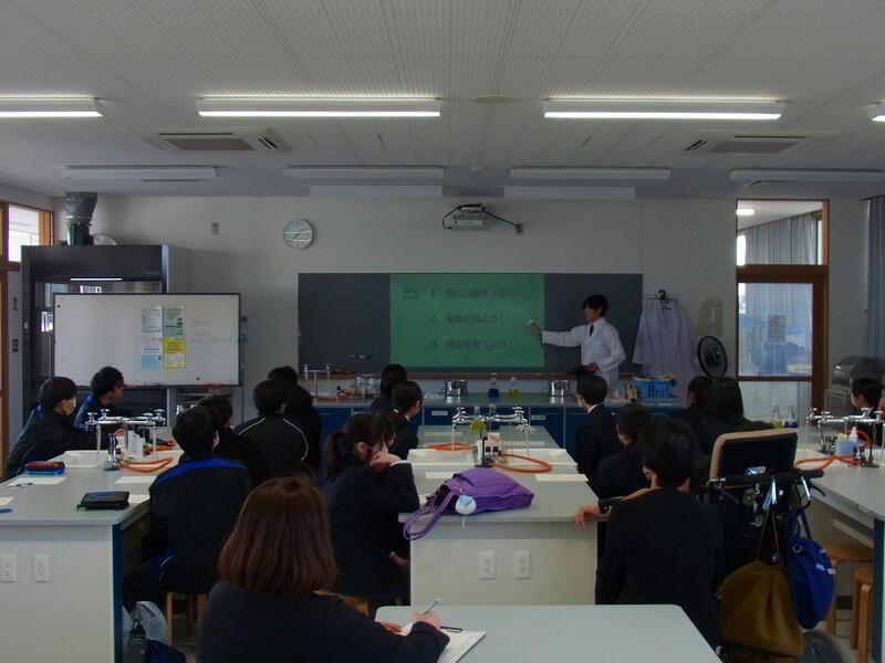 | 模擬授業の様子(地理) | 模擬授業の様子(化学) | 実験の様子(化学) |