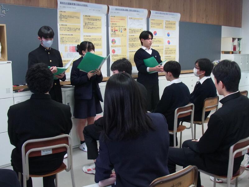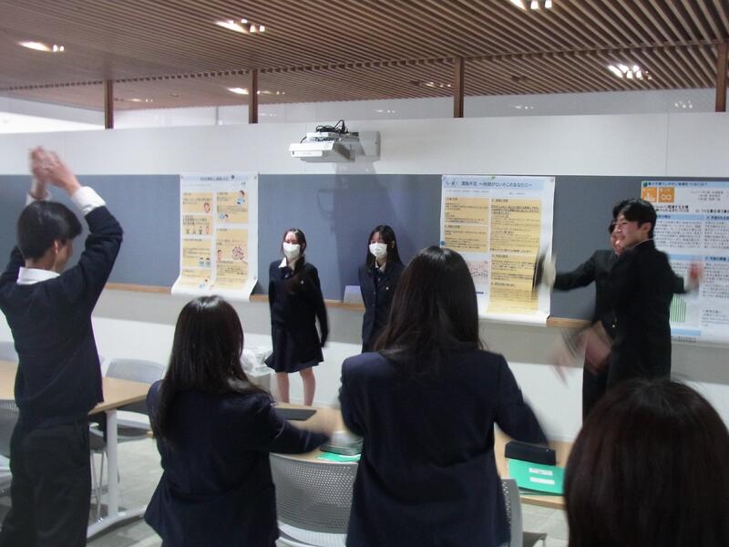 新校舎の各教室を使い探究発表会が行われました。今年は岩ヶ崎高校から2班、石巻好文館高校から2班が来校し、発表していただきました。